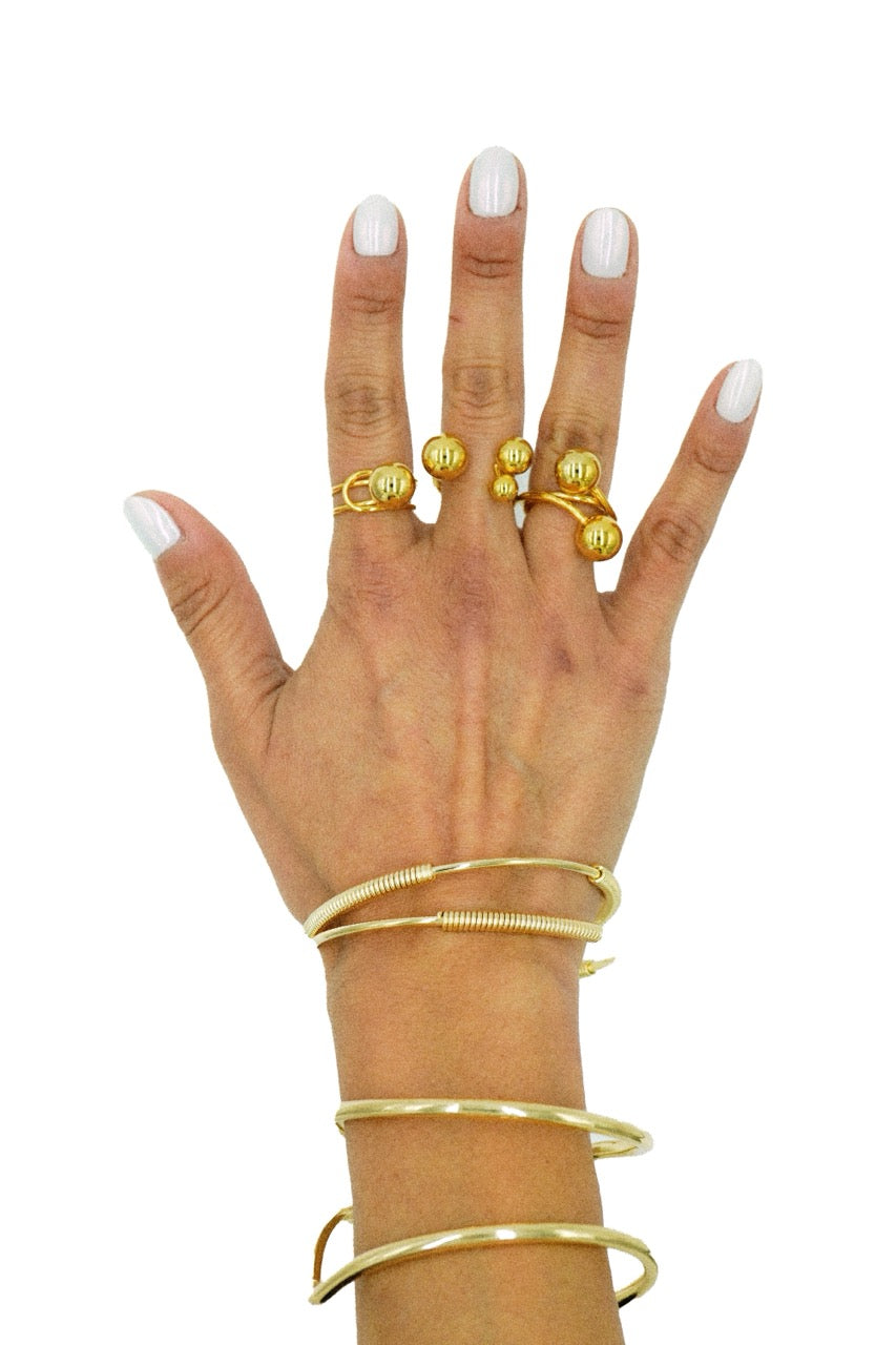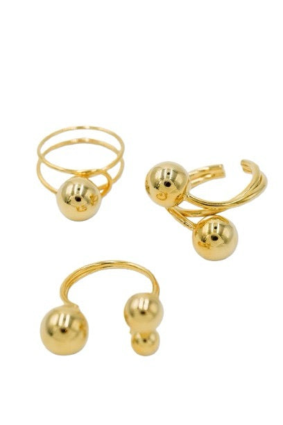 Este set de anillos sobresalen por sus curvas envolventes y esferas llamativas, combinando líneas suaves con detalles redondeados que añaden un toque divertido y único a tu estilo.